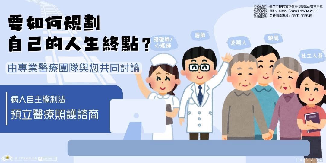 📍 本市共有 27 家醫療機構提供預立醫療照護諮商 👉 可至本局官網查詢名單,直接前往或致電預約 📌 衛生福利部健保署提供符合資格者「一生一次」健保給付 📞 免付費諮詢專線:0800-008-545